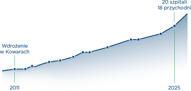 Zapoczątkowany w 2011 roku projekt, którego pierwszym etapem była niewielka instalacja w Kowarach, rozwinął się w jednolity i centralnie zarządzany system funkcjonujący obecnie w 20 szpitalach i 18 przychodniach.